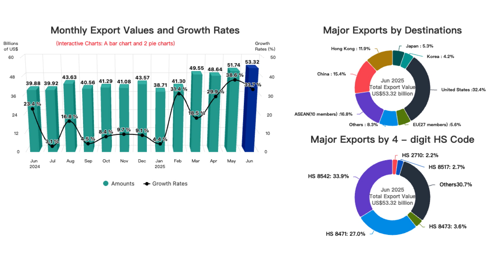 The Latest Export/Import Values and Growth Rates for Taiwan