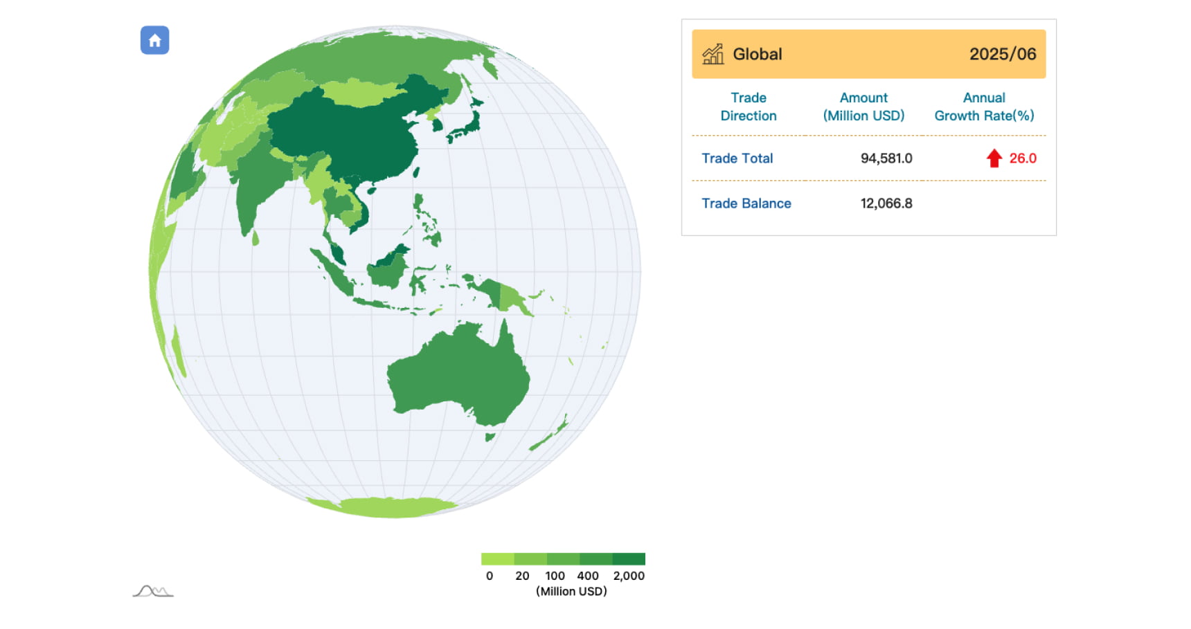 The Latest Value of Taiwan's Trade with Major Countries and Regions